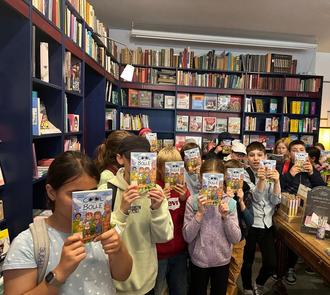 Zum Abschluss erhielt jedes Kind das diesjährige Welttags-Buch der Aktion „Ich schenk dir eine Geschichte“ mit dem Titel „Cool wie Bolle“. Diese unterhaltsame Geschichte wird im Anschluss an den Besuch im Deutschunterricht auch noch gelesen. Außerdem gab es für jedes Kind einen Lutscher als kleine Aufmerksamkeit der Buchhandlung. Die Viertklasslehrerinnen bedanken sich herzlich bei Familie Gerber für diese Aktion und auch dem Förderverein der Lindenschule, der die Fahrtkosten der Kinder ohne Deutschlandticket übernommen hatte.