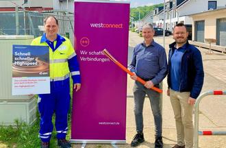 FRANKEN. Privathaushalte sowie Gewerbetreibende aus dem Stadtteil Franken können ab sofort über moderne Glasfaserleitungen im Internet surfen. Vertreter*innen der Kommune und der Westconnect GmbH gaben gemeinsam den offiziellen Startschuss für das Breitbandnetz. Insgesamt profitieren rund 170 Haushalte von den Gigabit-Verbindungen, die sich im Rahmen der erfolgreichen Vorvermarktung für die attraktiven Glasfaserangebote von Westenergie Breitband entschieden hatten. Das neue Glasfasernetz bietet dabei Übertragungsraten von bis zu 1.000 Megabit pro Sekunde.