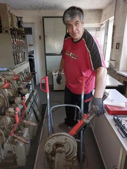 Vorsitzender Ulrich Stumm mit einem ausgebauten Signalhebel.