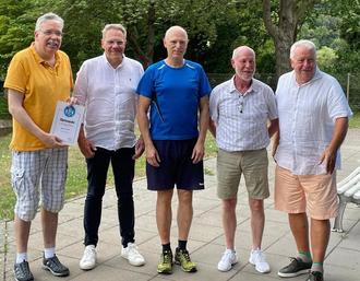 Matthias Biniok bedankte sich bei jedem für die langjährige Unterstützung des Sports in Bad Breisig und überreichte entsprechende Urkunden sowie Weinpräsente.