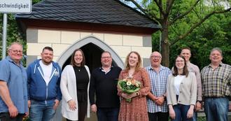 Der neue Vorstand: (v.l.) Tambourmajor Andreas Fuchs, Andreas Braun, Schriftführerin Louisa Hansen, Kassierer Dietmar Weiß, 1. Vorsitzende Melina Fuchs, Manfred Weiß, Lena Schmickler, 2. Vorsitzender Mike Becker, Guido Ockenfels.
