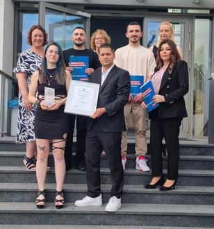 AHRWEILER. Die Friseur-Innung Ahrweiler hat kürzlich ihre jährliche Lossprechungsfeier abgehalten, bei der den erfolgreichen Gesellinnen und Gesellen feierlich ihre Prüfungszeugnisse durch den Obermeister Daniel Röber überreicht wurden. Obermeister Daniel Röber betonte während seiner Ansprache die Wichtigkeit des Friseurhandwerks und die Bedeutung einer fundierten Ausbildung. „Als Obermeister der Friseur-Innung Ahrweiler möchte ich meinen herzlichen Glückwunsch an die Absolventen aussprechen. Sie haben nicht nur ihr Talent bewiesen, sondern auch den Mut gezeigt, sich den anspruchsvollen Prüfungen zu stellen. Wir sind überaus stolz auf Ihre Leistungen und freuen uns, Sie nun als vollständig ausgebildete Friseurinnen und Friseure willkommen zu heißen“. Er überreichte den Gesellinnen und Gesellen ihre Prüfungszeugnisse und Ronja Schopp aus Sinzig, Ausbildungsbetrieb Kürsat Agcay eine Urkunde und eine Trophäe. Elke Zentner von der Kreishandwerkerschaft Ahrweiler gratulierte den Absolventen ebenfalls herzlich und überreichte im Auftrag der Sparkassen Stiftung „Zukunft Kreis Ahrweiler“ den Förderpreis an die Prüfungsbeste Ronja Schopp. Der Preis selbst ist mit 500 Euro dotiert, der in Form eines Spargeschenkgutscheines als Unterstützung der eigenen Fort- und Weiterbildung auf dem künftigen Berufsweg zur Verfügung gestellt wird. Die Lossprechungsfeier war ein inspirierendes und ermutigendes Ereignis, das nicht nur die Absolventen, sondern auch ihre Familien begeisterte. Unterstützung bekam die Friseur-Innung auch von der Volksbank Rhein-Ahr-Eifel eG, die sich an den Kosten der Feier beteiligten. Auszubildende: Ausbildungsbetrieb: Ali Abdo, Sinzig; Hassan Hammoudi Planet Hair, Sinzig; Evlin Jano, Bad Breisig; Björn Franke, Bad Neuenahr-Ahrweiler; Altin Pirraku, Bad Breisig; Kürsat Agcay, Bad Neuenahr-Ahrweiler; Ronja Schopp, Bad Neuenahr-Ahrweiler; Kürsat Agcay, Bad Neuenahr-Ahrweiler. Prüfungsbeste sind: Ronja Schopp, Bad Neuenahr-Ahrweiler Kürsat Agcay, Bad Neuenahr-Ahrweiler
