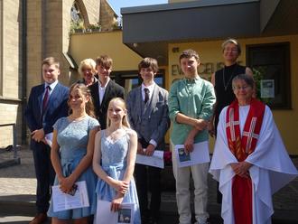 Einige der zwölf Konfirmand*innen der Ev. Kirchengemeinde Bad Breisig.