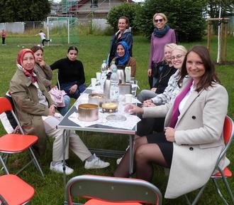 Die teilnehmenden Kinder und Mütter freuten sich sehr, dass der Platz nun wieder genutzt werden kann. Auch das Klapp-Café und das vom HOT mitgebrachte Spielmobil begeisterten Alt und Jung. Die Anwohnerinnen lobten das friedliche Miteinander der unterschiedlichen Kulturen „Am Teich“ sowie die insgesamt gute Atmosphäre.