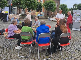 Das Klapp-Café auf dem Wochenmarkt, das im April zum ersten Mal stattfand, wird sehr gut angenommen. „Die Sinzigerinnen und Sinziger scheinen auf so ein Angebot gewartet zu haben – das Klapp-Café ist schon jetzt ein etablierter Treffpunkt für Einzelpersonen und Kleingruppen“, so Bürgermeister Andreas Geron.