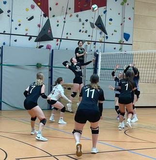 Die Volleyballerinnen in Aktion.