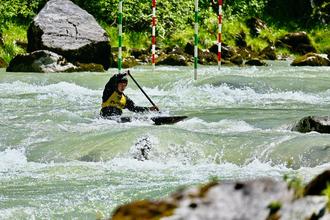 Elisa Steinke im wilden Wasser der Saalach (Lofer/AUT)