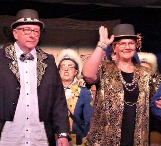 Es wurde etwas exotisch, als die Magic Majorettes in schrill pinkfarbenen Kostümen nach spanischen Klängen über die Bühne fegten. Besonders effektvoll bei abgedunkelter Bühne beleuchteten Stäbe. Dann erschien ein ganz besonderer Tanzmajor auf der Bühne: Andrea Klapperich, ein leicht kräftiges Mädchen, bedauerte in ihrem Vortrag, dass sie zunächst keinen Tanzmajor für sich gefunden habe. Letztlich konnte sie sich doch einen angeln, köstlich in Wort und Mimik. Der Chor der Stadtmaure-Möhne hatte auf bekannte Lieder wie „Dat es Heimat“ oder „Unser Stammbaum“ auf Sinzig umgemünzte Texte intoniert, bei denen der Refrain begeistert mitgeschmettert wurde. Lachsalven am laufenden Band produzierte Jochen Moll als Senzije Feuerwehrmann, in dem er einige Interna der Wehr ausplauderte. Bevor die Showtanz-Gruppe der Närrischen Buben zum Abschluss ihr neues Programm „Die Goldenen Zwanziger Jahre“ präsentierte, bei dem Akrobatik und Anmut zugleich begeistern konnten, wurden mit Anni Linke und Albert Fischer noch die ältesten Gäste mit einem Blumenstrauß und einer Flasche Wein geehrt. Leider blieben im Gegensatz zu früheren Jahren einige Tische unbesetzt, vielleicht doch noch eine Folge der Pandemie. Schade, das Programm hätte ein volleres Haus verdient.