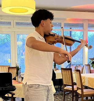 So kamen auch dieses Jahr zahlreiche Mitglieder in den festlich geschmückten Gastraum des Hotels zur Mühle. Bei Kaffee und Kuchen fanden erste Begegnungen statt. In diesem Jahr konnte als besonderer Höhepunkt der Feier der junge Geiger Noah Sahinkuye begrüßt werden. Begeistert lauschten alle dem virtuosen Spiel des jungen Künstlers, der von Klassik über Filmmusik bis zu Tangoklängen ein breites Repertoire darbot. Auch das gemeinsame Singen von Weihnachtsliedern durfte nicht fehlen. Zur Zugabe spielte er den Armstrong-Song „what a wonderful world“, welch toller Abschluss! Des Weiteren wurde die Geschichte vom „störrischen Esel“ von Naomi Schäfer vorgetragen.