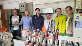 Bleibt die Technik mechanischer Stellwerke sichtbar? Darüber berieten (von links) Edgar Steinborn (IG Ahrtalbahnfreunde), Dirk van Kaathoven, Jonas Haffmann, Abdullah Alsali, Christian Sauer (alle DB Netz) und Wolfgang Groß (Ahrtalbahnfreunde) im Stellwerk Ahrweiler.