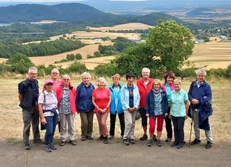 RIEDEN/SINZIG. Der Waldseepfad Rieden lockte vor kurzem 13 Wanderinnen und Wanderer des Eifelvereins Sinzig zu einer schönen Sommertour an. Wanderführerin Heike Ehlenbeck startete mit ihrer erwartungsvollen Gruppe am Ufer des Riedener Waldsees. Doch obwohl der See zum Verweilen einlud ging es sogleich entlang des Rehbachs zum Ortseingang Rieden und von dort auf einem urigen steilen Pfad in den Wald hinein. Sobald die Gruppe den Wald hinter sich gelassen hatte, öffnete sich vor ihr eine weite Wiesenlandschaft mit einem ersten Blick hinauf zum prominenten Gänsehalsturm. Über einen Serpentinenpfad war der Sendeturm bergauf bald erreicht. Eine tolle Panoramasicht von der Aussichtsplattform belohnte für die Mühen des Anstieges. In der Gänsehalshütte unterhalb des Turms verbrachten die gut gelaunten aber hungrigen Wanderer ihre gebührende Mittagsrast. Gleichzeitig wurden sie abermals mit grandiosen Ausblicken auf den Laacher See und die Eifel belohnt. Gut gestärkt wanderte die Gruppe anschließend erneut steil bergauf zum Maifeldblick mit Sicht auf die weiten Landschaften des Maifelds. Die letzte Etappe des Eifel-Traumpfades führte die Wanderer durch Waldpassagen und offene Felder zum letzten Aussichtspunkt, dem Udelsheck. Hier eröffnete sich ein letzter wundervoller Blick ins Nettetal und auf den Kirchwald. Nach einer kurzen Verweilpause ging es zügig zum Ausgangspunkt, dem Riedener Waldsee hinunter. Im Forsthaus in Volkesfeld ließen die Wanderfreunde bei Kaffee und Kuchen die Tour mit den herrlichen Eindrücken noch einmal Revue passieren und den Wandertag gemütlich ausklingen.