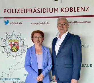 SINZIG./ KOBLENZ. Bei ihrem Antrittsbesuch im Polizeipräsidium Koblenz traf Landtagsabgeordnete Susanne Müller (SPD) Polizeipräsident Jürgen Süs. Im Mittelpunkt des Gesprächs standen aktuelle Herausforderungen der Polizeiarbeit: Nachwuchsgewinnung, Digitalisierung, Gewalt gegen Einsatzkräfte und das neue Polizeigesetz (POG).