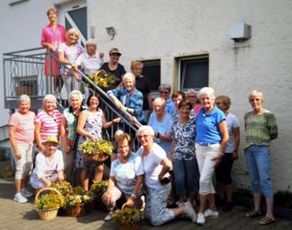 So versammelte sich auch dieses Jahr eine Gruppe von 22 Frauen auf dem Katharinenhof bei Hilde Kurp, um diese jahrzehntelange Tradition zu pflegen. Die vorher gesammelten Wildkräuter und Blumen wurden in geselliger Runde zu bunten Sträußen gebunden und schnell füllten sich die Körbe für die Kräuterweihe am Sonntag. Nach getaner Arbeit setzt man sich im Garten zusammen und ließ den Nachmittag bei Kaffee und Kuchen gemütlich ausklingen.