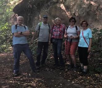 Am Kurpark Brohltalaue Ost überquerte die Gruppe den munter plätschernden Brohlbach. Weiter führte der Weg oberhalb des Bachs bis fast zum Ende des Wegs in Brohl zumeist durch kühlen Wald. Eine erste Rast wurde an der verfallenden Brunnenanlage am Seniorenheim Tönisstein eingelegt. Nach der Überquerung der Straße war ein Anstieg bis zum Fürstenweg zurückzulegen. Ein Erklärung für die Bezeichnung des Weges fand sich am Wegweiser. Der Fürstenweg führte am Hang entlang, vorbei an mächtigen Tuffwänden bis zum Mineralbrunnen Tönisstein. Nach Überquerung des Zufahrtsstraße tauchte man wieder ein in den Wald. Auf teils schmalen und stark zugewachsenen Wegen war das Vorankommen mühsam. Steil bergab stieg man, um die B421 zu überqueren. Am Brohlbach entlang ging es bis in die Ortsmitte von Brohl.