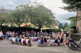 Die Kinder wählten das Thema: Wir feiern, dass wir so groß geworden sind und in die Schule gehen. Und da gab es für die Kinder einiges zu feiern. Sie kamen stolz mit ihren Schulranzen und zeigten diese auf dem Platz der Begegnung ihren kleinen Freunden.