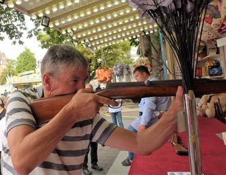 Schießen, Entenangeln, Pfeilwurf auf Luftballons und zum Schluss ein Geschicklichkeitsspiel, bei dem mit einer automatischen Schere ein Seilchen durchschnitten werden musste, um sich ein riesiges Kuscheltier zu sichern. Nach der ausgelosten Reihenfolge nahm sich Alexander Albrecht das Gewehr und sicherte sich ohne Fehlschuss gleich die Führung. Hans-Jürgen Koffer konnte beim Entenangeln überzeugen, holte auch beim Pfeilwurf acht Punkte und lag vor dem abschließenden Wettbewerb einen Punkt vor Albrecht. Könnte der das Spiel noch drehen, oder vielleicht auch noch Gunter Windheuser, der nur knapp dahinter lag?