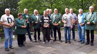 Die erfolgreichen Schützen mit dem neuen Seniorenkönig Dieter Gensler (5. von links) und dem Sieger im Serienschießen Frank Degen (4. von rechts).