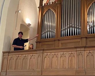 BREISIGER LAND. „Ein Organist baut eine Beziehung zu seinem Instrument auf, und es kann auch Liebe sein,“ diese Aussage von Sven Scheuren zu Beginn der Orgelwanderung durchs Breisiger Land macht deutlich, mit welchem Herzblut er die Teilnehmerinnen und Teilnehmer begeisterte. Und der Funke sprang über. Die Gruppe erlebt zunächst in Gönnersdorf, später in Bad Breisig einen sehr informativen und kurzweiligen Nachmittag. Von der Klaisorgel in Gönnersdorf, zur Stummorgel in der evangelischen Kirche bis hin zur Orgel in Niederbreisig ertönten alle Orgeln mit ihren unverwechselbaren Klängen und wurden näher erläutert. In allen Kirchen wurde zunächst das Kirchengebäude vorgestellt, dann ertönte die Orgel. Anschließend konnte die Gruppe hautnah mit dem Organisten die Orgel kennenlernen. Alle waren sehr beeindruckt von den Erläuterungen und freuen sich auf die nächsten Orgelkonzerte von Sven Scheuren, die demnächst im Zuge der Breisiger Abendmusik erklingen werden. Weitere Informationen unter www.breisigerland.de