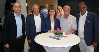 v.l.: ISB-Vorstand Ulrich Link, HwK-Präsident Kurt Krautscheid, Staatssekretärin Nicole Steingaß, Kreishandwerksmeister Frank Wershofen und HwK- Geschäftsführer Ralf Hellrich.