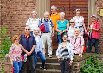 Die Wandergruppe vor der Donatuskapelle auf dem Kaiserberg.
