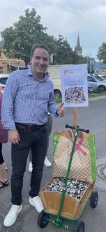 Bad Breisigs Bürgermeister Marcel Caspers spendet Kronkorken.