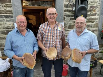 "Backesfest“ in Westum. Am Backes wurde ganz klassisch gefeiert. Es gab auch selbstgebackenes Brot und sie verstehen sich aufs Brotbacken: (v.l.) Georg Alfter, Rolf Flerus Heribert Hillger.