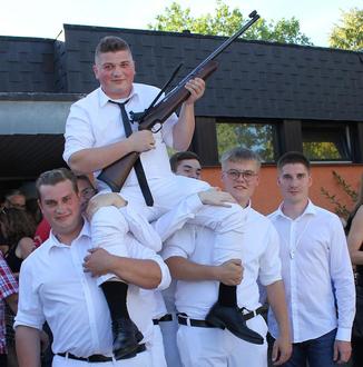Der neue Schützenkönig auf den Schultern seiner Mitbewerber.