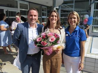 Beim Sommerfest der Römer-Thermen wurde Olympionikin Ricarda Funk (Mitte), von VG-Bürgermeister Marcel Caspers und Esther Zimmermann, Geschäftsführerin der Römer-Thermen geehrt.