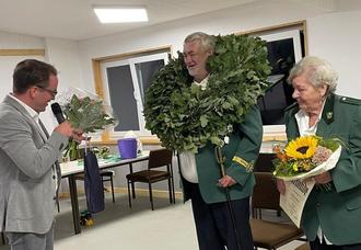 König 2022 Rainer Maier mit Gattin und Gratulant Bürgermeister Marcel Caspers.