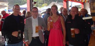 Bei der Eröffnung (v.l.): Wehrführer Thomas Winkelmann, Bürgermeister Marcel Caspers, Brunnenkönigin Corinna und der stellvertretende Wehrführer Alexander Harsche