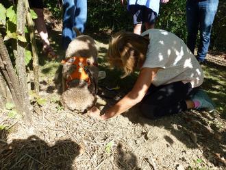 SINZIG. DG. Der Sinziger Verein Ahrtrüffel hatte neulich zu einer kleinen Exkursion eingeladen. Rund zwanzig Gäste nahmen zunächst den etwas beschwerlichen Weg vom Bahnhof bis zur hoch über Bad Bodendorf gelegenen Truffière auf sich. Pilzexperte Frank Krajewski berichtete eingangs über die Anfänge der Anpflanzungen, dann ging es aber gleich los. Die beiden auf Trüffelsuche spezialisierten Hunde waren schon ganz aufgeregt und schienen die Köstlichkeiten zu wittern. In zwei Gruppen unter der Führung von Meike Siebers und Christine Schröder stöberten Davino und Bella über die Plantage -und wurden auch bald fündig: Ein kurzes Anschlagen, und dann aufgeregtes Buddeln verrieten, dass hier Trüffel unter der Oberfläche sein mussten. Vorsichtig wurde dann mit einer Art Messer der Boden weiter aufgegraben, was sich nicht immer als ganz so einfach erwies. Denn Trüffel können bis zu 30 cm im Erdreich versteckt sein, und wenn durch die Trockenheit der Boden ziemlich hart ist, treten schon mal einige Schweißperlen auf die Stirn. Der Fund, zunächst nur ein kleines Stück, dann eine recht beachtliche Kugel, machten die Mühen aber wett. Grundsätzlich eignet sich jeder Hund für die Ausbildung zur Trüffelsuche, sofern er Interesse am Spielen und an der Bewältigung von Aufgaben hat, so die wissenschaftliche Beraterin des Vereins, Dr. Meike Siebers. Trüffel sind aber besonders geschützt und dürfen in freier Natur nicht gesammelt oder gar verkauft werden. Dieses Verbot ist schon recht alt und eigentlich nicht mehr ganz zeitgemäß, denn Trüffel kommen viel häufiger vor, als gemeinhin bekannt war. Da sie sich im Erdreich „verstecken“, findet man sie aber nicht so leicht. In der Bad Bodendorfer Truffière wurden hauptsächlich Haselsträucher gepflanzt und entsprechend mit Trüffelsporen „geimpft.“ Es eignen sich aber auch andere Wirtspflanzen wie Buche oder Eiche. Der Boden wird aber regelmäßig auch auf seinen pH-Wert hin untersucht, da Trüffel im sauren Milieu nicht gut gedeihen. Um einer Verdichtung des Erdreichs entgegenzuwirken, ist eine möglichst schonende Bodenbearbeitung erforderlich. Und Wasser ist natürlich auch nötig. Wenn nicht genug Regenwasser gespeichert werden kann, helfen die Floriansjünger schon mal mit einer Wasserspende aus. Zusätzlich liegen, auf den ersten Blick etwas seltsam anmutend, Strohballen unter den Sträuchern, die mithelfen, die Feuchtigkeit etwas länger im Boden zu speichern. Nach Ende der „Trüffeljagd“ wurde der Erfolg mit einem Gläschen gebührend gefeiert. Und dann ging es wieder hinunter zum Treffpunkt ins Vieux Sinzig, wo Jean-Marie Dumaine mit Gattin Colette eine Mahlzeit mit vielen kleinen Köstlichkeiten bereitet hatten. Natürlich waren auch die Trüffel dabei. Dumaine erzählte zwischendurch noch einmal über die Anfänge der Trüffel im Ahrtal aus dem Jahr 2002. Anschließend stellte Karin Lüer-Kirsch, die sich als Mikroskop-Fotografin einen Namen gemacht hat, ihr Buch vor. Es ist zwar durchaus wissenschaftlich, dennoch gut verständlich geschrieben. Neuere Forschungsergebnisse sind mit eingearbeitet so wie auch eine Anleitung zum Anlegen einer Truffière. Wer Interesse an Trüffeln hat, kann sich gerne beim Verein Ahrtrüffel informieren.