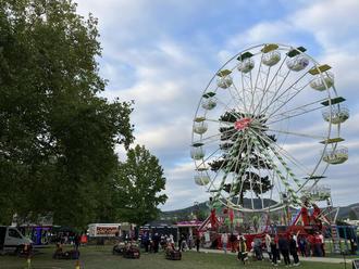 BAD BREISIG.mmi. „Wir sind wirklich zufrieden mit unserer Premiere hier“, sagt Frederike Hans begeistert. Hans, Mitglied des Schaustellerbetriebes Langhoff & Hans aus Plettenberg, sorgt gemeinsam mit ihrem Team für die augenfälligste Neuerung des diesjährigen Zwibbelsmaats in Bad Breisig: Ein Riesenrad dreht sich im Kurpark und lässt atemberaubende Blicke aus der Höhe auf das bunte Markttreiben zu. Dabei geht es auf dem Zwibbelsmaat sonst zu, wie in jedem Jahr. Eine bunte Mischung aus Fahrgeschäften, Lebensmittelständen, Kunsthandwerkern und Süßigkeitenparadiesen lockt Besucher aus nah und fern – der übliche Breisiger Stau auf der B9 scheint noch ein wenig länger zu sein als sonst. Im Kurpark dann beschauliches Bummeln, man hat Zeit, man lässt sie sich. Wer nicht an den Ständen entlangschlendert, sitzt im Biergarten, hört der Musik zu und gönnt sich ein kühles Getränk im freundlichen Spätsommer – vom freitäglichen Regen mal abgesehen.