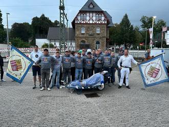 Eine illustre Schar von Junggesellen machte sich samt Kirmesmann auf eine trinkreiche Runde durchs Dorf