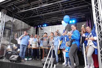 Der Spielmannszug führte die Vereine erstmals in einem Festzug zur Bühne.