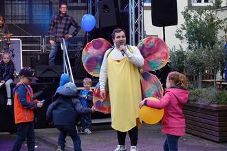 Mittendrin waren allerhand Tiere zu sehen, ein moderierender Schmetterling in Person von Karsten Janotta zum Beispiel, der jeden Höhepunkt ankündigte. Oder aber die aus dem Fernsehen bekannte WDR-Maus, dieses Mal in Menschengröße, die sich als Walking Act mit ihren kleinen und großen Fans gerne fotografieren ließ.