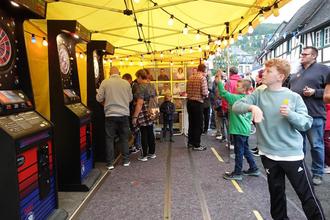 BAD BODENDORF. TW. Bei der SPD gab es Reibekuchen, bei den Minigolfern ein saftiges Steak, beim HoT Sinzig eine vegane Suppe und bei den Möhnen Kaffee und Kuchen: in Bad Bodendorf war wieder das weit über die Ortsgrenzen beliebte Dorffest angesagt. Zum 43. Mal und nach zwei Jahren Corona- und Flutpause war das Fest sehnsüchtig erwartet worden. Die meisten Ortsvereine, Institutionen und zahlreiche Unternehmer lockten dabei eine vierstellige Besucherzahl auf die Hauptstraße mitten im Ort, an der sich Stand an Stand reihte. Herbstliches Schmuddelwetter hielt nicht vom Besuch der Tagesveranstaltung am vergangenen Samstag ab. Man ließ sich von zwei Bühnen herab unterhalten und dabei das umfangreiche kulinarische Angebot munden. Man informierte sich über die Arbeit der Vereine und ließ griff beim Unternehmerverein zu den Dartpfeilen, um beim Dorfturnier hochwertige Sachpreise zu gewinnen.