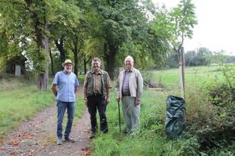 Hermann-Josef Knops (l.) und Martin Wisskirchen (r.) mit Revierförster Stephan Braun auf der Sinziger Kastanienallee.