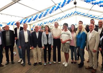 BAD BODENDORF. DG. Da wurde nicht nur ein Band durchgeschnitten oder ein Ball für das neue Großspielfeld übergeben, nein, die Bad Bodendorfer haben ein großes Festzelt aufgebaut und dann ein ganzes Festwochenende veranstaltet. Dafür hatte der SCB auch allen Grund: Mit der Übergabe des neuen Sportplatzes konnte die erste Großsportanlage im Kreis Ahrweiler nach der verheerenden Flut ihrer Bestimmung übergeben werden. Am Samstag dann großer Bahnhof im Festzelt: Neben Staatssekretärin Simone Schneider, die einen Förderbescheid über 1,32 Mio. mit im Gepäck hatte, waren noch zahlreiche Vertreter aus Politik und Gesellschaft der Einladung gefolgt. Jan-Niklas Ellerich vom SCB moderierte gekonnt und humorvoll das Programm. „Wir können Geld dazu geben, aber SIE bauen auf“, so die Staatssekretärin bei ihrer Begrüßung. Nicht unerwähnt blieb auch die gegenseitige Unterstützung der Sportvereine im Kreis, die einen, wenn auch verringerten, Trainingsbetrieb erst möglich gemacht hat. „Sportvereinegrößte sind mit rund 30% der Einwohner die größte Bürgerinitiative im Kreis“, wusste Landrätin Cornelia Weigand, selbst aktive Sportlerin, zu berichten. Es geht hier nicht nur um die Sportausübung, Vereine bieten Raum für Zusammenhalt und haben damit eine ganz wichtige Funktion im gesellschaftlichen Leben. „Für viele ist der normale Alltag noch in weiter Ferne, aber es gilt, der Leichtigkeit des Lebens wieder Raum zu geben.“ Die Präsidentin des Sportbundes Rheinland Monika Sauer sprach die Probleme der letzten Jahre an: Flut, Corona, Krieg -das alles treffe die Vereine hart. Aber deren große Solidarität hat geholfen, diese Krisen anzugehen und zu überwinden. Die Vereine sind der Kitt in der Gesellschaft. „Bleiben Sie Ihrem Verein und dem Sport treu.“ Sportkreisvorsitzender Fritz Langenhorst ließ noch einmal die schlimmen Ereignisse Revue passieren und lobte das großartige Engagement des SCB, der schon unmittelbar nach der Flut gleich die notwendigen Maßnahmen ergriffen und sich vehement für den Wiederaufbau eingesetzt habe. „Das war nicht nur vorbildlich, sondern richtungweisend.“ Zur Auflockerung dann ein munteres Tänzchen einer Kindergruppe des SCB, bei dem der ganze Saal sich im Takt mitbewegen durfte. Bürgermeister Andreas Geron erinnerte kurz an all die Maßnahmen, die schon fertiggestellt wurden oder noch auf ihre Vollendung warten. Getan. „Manches sieht man, manches noch nicht, es wird aber viel getan“, so seine abschließenden Worte. Weitere Grußworte kamen vom Chef des Fußballkreises Rhein-Ahr, Dieter Sesterheim, dem Vorsitzenden der Stiftung „Fußball hilft“, der stellvertretenden Ortsvorsteherin Cora Blechen und von Vereinschef Lutz Baumann, ehe verdiente Mitglieder geehrt wurden. Anschließend ging es mit einem Inklusions-Fußballturnier auf dem neuen Platz dann auch sportlich zu. Am Abend wurde bei heißer Musik der „Pink-Panta-Partyband“ die Partynacht eingeläutet. Am Sonntag gab es Jugendspiele und später wurde der 11-Meter Champion gesucht. Für das leibliche Wohl war natürlich auch bestens gesorgt, und so ging ein ereignisreiches und für den SCB sicher sehr erfolgreiches Wochenende zu Ende.