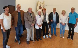 Die besonders längjährigen Mitglieder mit dem Vorstandsduo Michaela Jüris und Roland Janik, in der Mitte Hans-Peter Jonen und Gertrud Herter