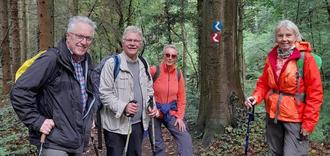 Für die Mühen des steilen Aufstiegs zum Kaiserberg entschädigte eine herrliche Aussicht. Der Weg führt zum Roniger Hof mit einem gut sortierten Hofladen. Unterwegs bescherte der Herbst durch den nächtlichen Sturm eine reiche Beute an Nüssen. Beim Ausblick über die Höhe konnten die Wandernden in der Eifel Regen erkennen, der sie schließlich ereilte. Kurze Zeit später schien schon wieder die Sonne.
