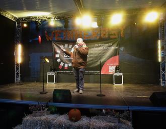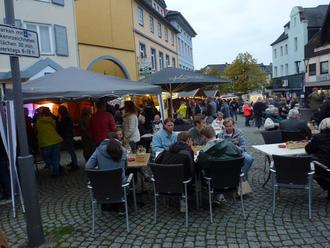 SINZIG. DG. Irgendwie schien Bacchus etwas traurig zu sein, vergoss er am vergangenen Wochenende doch einige Tränen über Sinzig. Dabei wäre das gar nicht nötig gewesen, denn im mit Strohballen gemütlich hergerichteten Sinziger Weindorf auf dem Markt war trotz allem eine prächtige Stimmung. Neben dem köstlichen Rebensaft, der gleich an mehreren Ständen genossen werden konnte, gab es auch noch musikalische Leckerbissen. Christian Schuld von der Aktivgemeinschaft eröffnete den diesjährigen Weinherbst kabarettmäßig mit Gesang und leitete dann über auf „Senses of Musical“, ein Musikensemble, das sich insbesondere bekannten Musical-Melodien verschrieben hat. Zur Eröffnung erschien die Gruppe in Kostümen von Nonnen und Geistlichen und begann mit „Oh Happy Day.“ Ob Solo-Vorträge oder wenn die ganze Gruppe aktiv war, der Auftritt war mehr als hörenswert. Wenn Sängerin Janine Mitrell auftrat oder das Duo Marc & Monty, die 50 Jahre Rock- und Popmusik zum Leben erweckten, auf der großen Bühne war einiges los. Und wenn mal keiner dort oben agierte, wurde Musik vom DJ geliefert. Sonntags war dann Familientag. Hier konnten die Kiddies bei „Deine Kinderband“ ordentlich mitsingen. Eine Hüpfburg und die Zirkusschule boten weitere Abwechslung. Die ganz Kleinen konnten auf einem Mini-Karussell ihre Runden drehen. Und Enten angeln bei Captain Duck gehört einfach mit dazu, genauso wie das Pfeile auf Luftballons werfen. Die Sinziger Geschäfte hatten sonntags dann ebenfalls ihre Türen geöffnet. Da kann dann auch schon mal der Hunger aufkommen. Neben den hiesigen Gastronomiebetrieben gab es an verschiedenen Ständen noch weitere Möglichkeiten, dem Rebensaft eine ordentliche Grundlage zu verschaffen. Auch wenn das Wetter nicht immer ganz so gut mitspielte, der Sinziger Weinherbst im kleinen, aber gemütlichen Weindorf erfreut sich großer Beliebtheit.