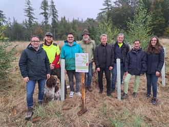 Gemeinsam mit Marcus Bausen und Jan Seehafer, sowie Vertretern aus Verwaltung und Politik überzeugte sich der Bürgermeister vor Ort vom Fortschritt des Projekts und den gesunden jungen Bäumen.