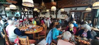 SINZIG. DG. Wer die Waldgaststätte Ännchen, herrlich oberhalb von Westum gelegen, kennt, weiß: Da gibt`s immer leckeren Kuchen und Kaffee. Vergangenen Freitag wehte einem aber der würzige Duft von Döppekuchen entgegen. Und das hatte seinen besonderen Grund: In Sinzig gibt es die „Senioren-Information.“ Hierunter verbergen sich vielfältige Angebote für die älteren Menschen der Stadt, angefangen bei Beratungen, konkreten Hilfen in Notlagen, dem Senioren-Taxi, Ausflugsfahrten oder Veranstaltungen unterschiedlicher Art. Organisiert wird die Senioren-Information von Sabine Schmitz, die hauptamtlich bei der Stadt Sinzig beschäftigt ist. Unterstützt wird sie dabei von der „Gemeindeschwester Plus“ Gerlinde Brenk und Monika Buckstegge von der katholischen Frauengemeinschaft. Und letzte Woche war es wieder so weit: Einmal im Jahr ist ein Treffen am Ännchen angesagt, in diesem Jahr stand Döppekooche auf dem Speiseplan. Knapp 50 ältere Sinziger waren mit dabei, bei Kaffee, einem Bierchen oder Gläschen Wein gemeinsam einen gemütlichen Nachmittag zu erleben. Das ist natürlich immer eine gute Gelegenheit, in Erinnerungen zu schwelgen, Neuigkeiten auszutauschen, oder sich einfach nur nett zu unterhalten. Und Unterhaltung wurde dann auch noch geboten: Monika Buckstegge brachte mit ihrem Vortrag vom blauen Teddy die Gesellschaft zum Schmunzeln. Und die Wirtsleute Mathilde und Rheinhold Alfter gaben sich mit Gesang und Gitarre musikalisch: „Als Vagabunden zogen wir durchs Land, und allerlei Weibergeschichten sind uns bekannt“, berichteten sie von einigen amourösen Erlebnissen. Es war wieder ein schöner Nachmittag, den unsere älteren Bürger auf Sinzigs Höhe erleben durften. Das ist im Übrigen keine eingeschworene Gemeinschaft. Sicher gibt es einige, die (fast) immer dabei sind, aber es gesellen sich auch immer wieder Neuankömmlinge hinzu, und das ist auch gut so. In Kürze steht ein Info-Abend zu Änderungen der Straßenverkehrsordnung an, sicher ein wichtiger Termin für alle, die noch selbst Auto fahren. Die nächste Fahrt geht dann zum mittelalterlichen Weihnachtsmarkt nach Siegburg. Je nach Art der Veranstaltung ist ein geringer Kostenbeitrag selbst zu leisten, den Rest steuert die Stadt bei. Um entsprechend planen zu können, ist allerdings eine vorherige Anmeldung erforderlich. Wer Interesse hat, kann sich gerne bei Sabine Schmitz informieren, entweder persönlich im Büro in der Bachovenstraße 10 oder telefonisch unter 99 48 55.