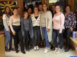 Charline Nett (stellv. Kita-Leitung), Fatlinda Gashi, Kristina Rule, Sikna Yahfoufi, Antonia Koll, Irena Denn (Zweite Vorsitzende), Jasmin Ohlf, Nadine da Cunha (Erste Vorsitzende), Maria Adam, Katja Fabiano, Alice Kröll (Leitung Kita) (v.l.). Auf dem Foto fehlen: Ramona Todorov und Daniela Schumann.