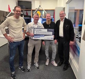 Die KG Ulk übergab den Spendenscheck für den Wiederaufbau in Höhe von 1.500 € an den 1. Vorsitzenden der KG Rievkooche Rene Kurth. Ebenfalls anwesend war der Ortsvorsteher von Bad Bodendorf, Jürgen Werf.