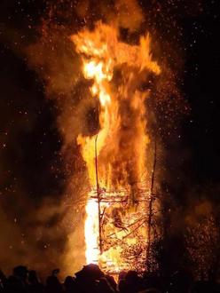 Die Feuerwehr hatte in Waldorf ein sehr großes Martinsfeuer errichtet.