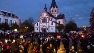 SINZIG. DG. Letzten Donnerstag füllte sich bei Einbruch der Dunkelheit der Kirchplatz immer mehr: Viele Kinder mit ihren bunten, teil selbst gebastelten Laternen sammelten sich, die Kleineren unter ihnen meist begleitet von ihren Eltern, um am traditionellen Martinszug teilzunehmen. Plötzlich war leichtes Pferdegetrappel zu hören: Sankt Martin höchst persönlich ritt ganz langsam auf dem Platz ein, musikalisch begleitet von Freiweg. Gegen halb sechs setzte sich der ganze Tross mit klingendem Spiel dann in Bewegung durch die Innenstadt. Mit dabei war auch der Löhndorfer Spielmannszug, für die Sicherheit sorgten Angehörige der Freiwilligen Feuerwehr und des DRK. Beim Marsch durch die Stadt wurden natürlich auch die Martinslieder gesungen. Endstation war das große Martinsfeuer auf der Jahnwiese. In Löhndorf und Koisdorf ging der Zug schon eine Woche früher. In Westum und Franken war es dann freitags so, und die Bad Bodendorfer folgten letzten Samstag. Faszinierend für die Kleinen sind immer wieder die großen Feuer, und die Martinswecken werde auch gerne entgegengenommen. Es ist gut, dass solche Traditionen gerade in der heutigen unruhigen Zeit gepflegt werden, können sie doch ein wenig Ablenkung, aber auch etwas Halt in der Gesellschaft geben.