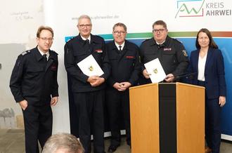 AHRWEILER. TW. Michael Zimmermann ist nicht mehr Brand- und Katastropheninspekteur (BKI) des Kreises Ahrweiler. Landrätin Cornelia Weigang verabschiedete den obersten Feuerwehrmann des Kreises am Montagabend und ernannte dessen bisherigen Stellvertreter Frank Linnarz zum neuen BKI. Mit Robert Zimmermann wurde zudem ein neuer Stellvertreter ernannt.