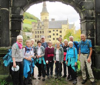 Später kamen alle leichtfüßig am Kulturdenkmal Schloss Arenfels an, wo es sich die fröhliche Schar bei Kaffee und Kuchen auf der Hofterrasse gut gehen ließ.