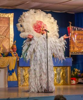 SINZIG. DG. Riesenstimmung am vergangenen Samstag im altehrwürdigen vollbesetzten und bunt geschmückten Helenensaal, als um 17:11 Uhr die diesjährige Proklamationssitzung eröffnet wurde. Gleich danach demonstrierten die Kindertanzgruppen der Närrischen Buben ihr tänzerisches Repertoire. „Mit dem Raumschiff in die Ferne…“ war das Motto der Showtanzgruppe Blau-Gold aus dem Neuwieder Stadtteil Heddesdorf, die anschließend die Beine wirbeln ließen. Und dann zog die geballte blau-gelbe Streitmacht auf die Bühne, wo Tanzpaar und Damengarde gleich ihre erste Vorstellung in der neuen Session geben konnten. Joachim Jung aus dem Westerwald brachte mit seinem Vortrag als „Lieselotte Lotterlappen“ die Sinziger Jecken dann ordentlich zum Lachen. Die Skylight Majorettes aus Bad Breisig reisten anschließend gekonnt tänzerisch durchs Weltall, ehe Udo Kohn und Thomas Berschbach aus Hönningen als „Der Een on der Anne“ erneut die Lachmuskeln aufs Ärgste strapazierten. Als Gäste aus der Nachbarschaft machten die Stadtsoldaten aus Remagen mit Musikcorps, Tanzmariechen und Garde den Sinziger Karnevalisten ihre Aufwartung. Travestie vom Feinsten, als Christina Sentiaca, verkörpert vom Sinziger Christian Schuld, in einem Outfit von viel Stoff und noch mehr Federn die Bühne eroberte. Die Showtanzgruppe der Närrischen Buben brachte anschließend mit viel Akrobatik, gepaart mit Fröhlichkeit und Anmut, tänzerische Spitzenklasse auf die Bühne. Jeckediz, ein Musikensemble von der Ahr, begeisterte mit Kölsch Rock der ersten Klasse, was die Stimmung im Saal förmlich zum Kochen brachte. Und dann der Höhepunkt des Abends schlechthin: Denn dann kam sie, die neue Sinziger Tollität. Ausgestattet mit einer ordentlichen Portion Mutterwitz erklomm Carmen Reuter als Sentiaca Carmen I. unter frenetischem Beifall und eskortiert von den närrischen Abordnungen das Podium. Sie ist im Sinziger Fastelovend natürlich keine Unbekannte, gehört sie doch der Gilde der Stadtsoldaten an und fungiert als Trainerin der Showtanzgruppe. Sinzig ist als wieder prinzig, oder besser gesagt: prinzessig. Sinzig kann sich sicher, sein dass die neue Sentiaca die Session bravourös über die Bühne bringen wird. Der Sitzung wohnte noch mehr rheinischer Hochadel bei. So waren das neue Prinzenpaar Tobi I. und Monique I. aus Brohl angereist, mit dabei waren auch die Bad Breisiger Tollitäten Peter III. und Drea I. Und auch Remagens närrische Herrscherin Natalie I. war unter den Gästen. Zum Abschluss versammelten sich alle Aktiven noch einmal auf der Bühne. Die musikalische Unterhaltung lag wie schon seit Jahren in den bewährten Händen der Rhein-Ahr-Spatzen. Sinzig ist also für die kommende Session bestens gerüstet und fiebert sicher schon der Traditionssitzung am 20. Januar entgegen. Dreimol Senzech Alaaf.